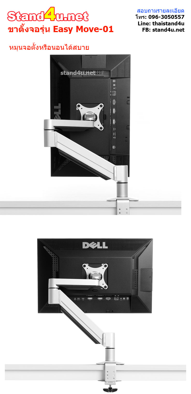 ขาตั้งรุ่นนี้สามารถปรับระดับ เอียงจอ และ หมุนจอได้แล้วนั้น ด้วยการออกแบบ รูปทรงให้กระทัดรัด เพื่อให้เหมาะกับพื้นที่โต๊ะที่จำกัด หรือ การใช้งานที่ไม่ต้องการให้จอยื่นออกมาเยอะเกินไป