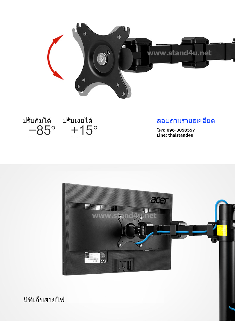 เมื่อติดตั้งเรียบร้อย สามารถวางบนโต๊ะได้ทันที เหมาะสำหรับผู้ที่ใช้งานร่วมกัน 4 จอ แต่โต๊ะไม่สามารถหนีบได้