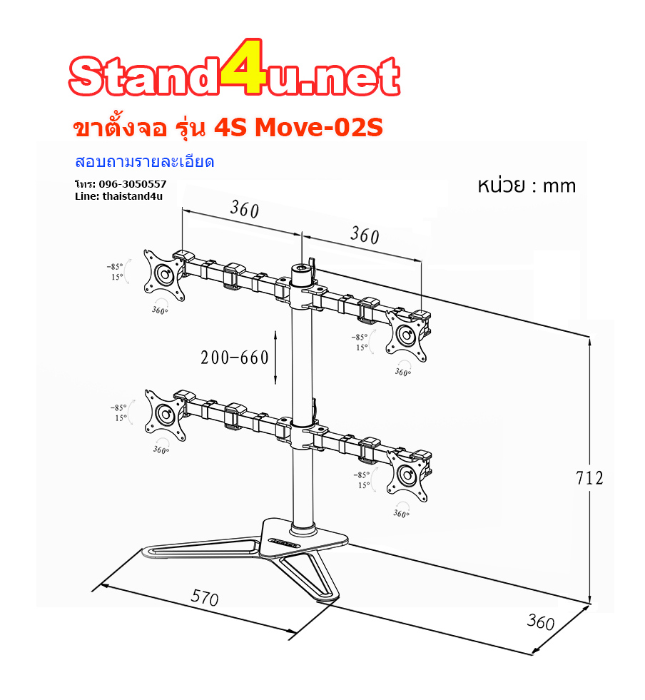 ขาตั้ง 4 จอ รุ่น 4S Move-02S เป็นขาตั้ง 4จอที่มาพร้อมกับฐานวาง