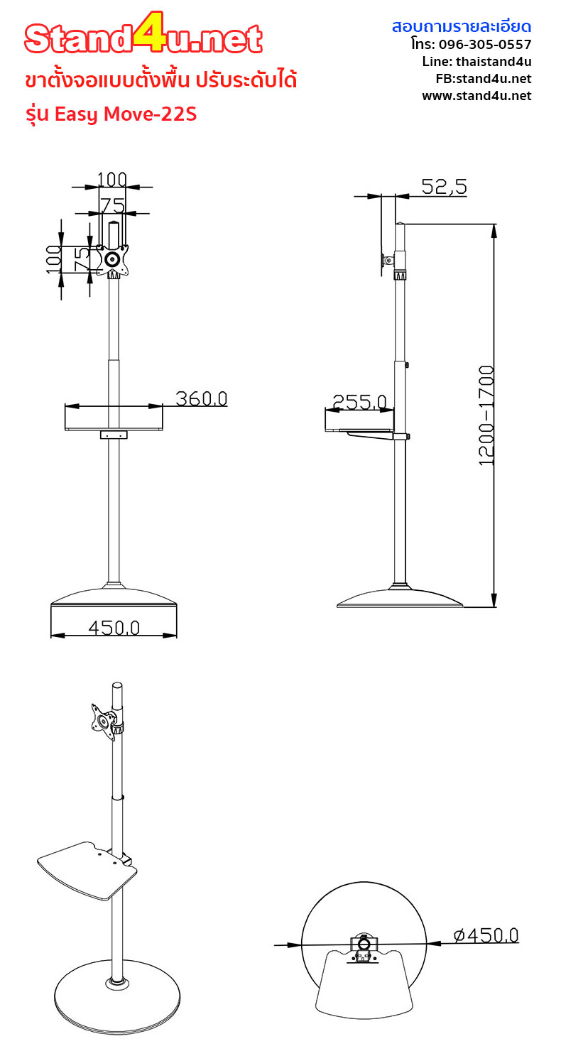 มาแล้วครับ ขาตั้งจอ แบบตั้งพื้น รุ่น Easy Move-22S สะดวกในการใช้งาน พร้อมชั้นวาง และ ฐานที่แข็งแรง ใช้พื้นที่ติดตั้งน้อย น่าใช้และดูดี