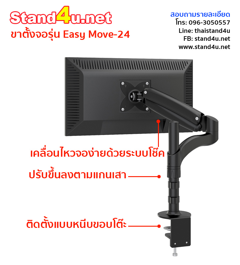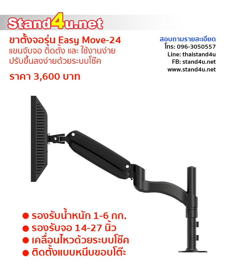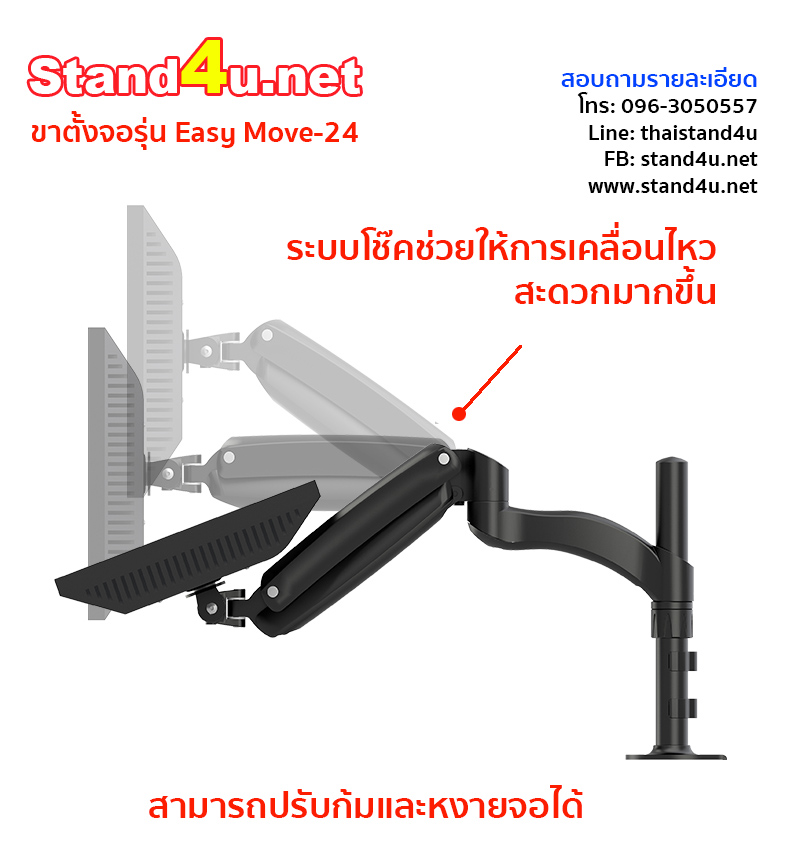 ขาตั้งจอรุ่น Easy Move-24 เป็นขาตั้งจอที่ยืดและปรับระดับได้รุ่นใหม่ล่าสุด ซึ่งขาตั้งจอที่มาพร้อมกับระบบโช๊ค ช่วยให้การเคลื่อนไหวจอขึ้นหรือลงเป็นไปได้อย่างสะดวก